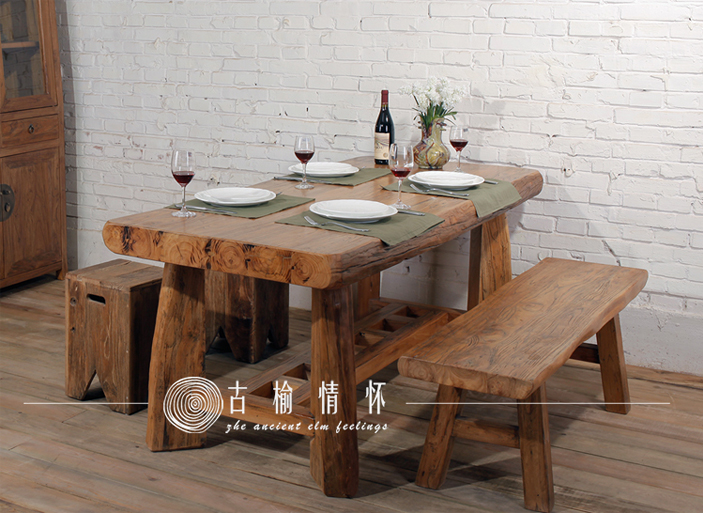 (古榆情怀老榆木餐桌,原生态的实木纹理,自然的形态)