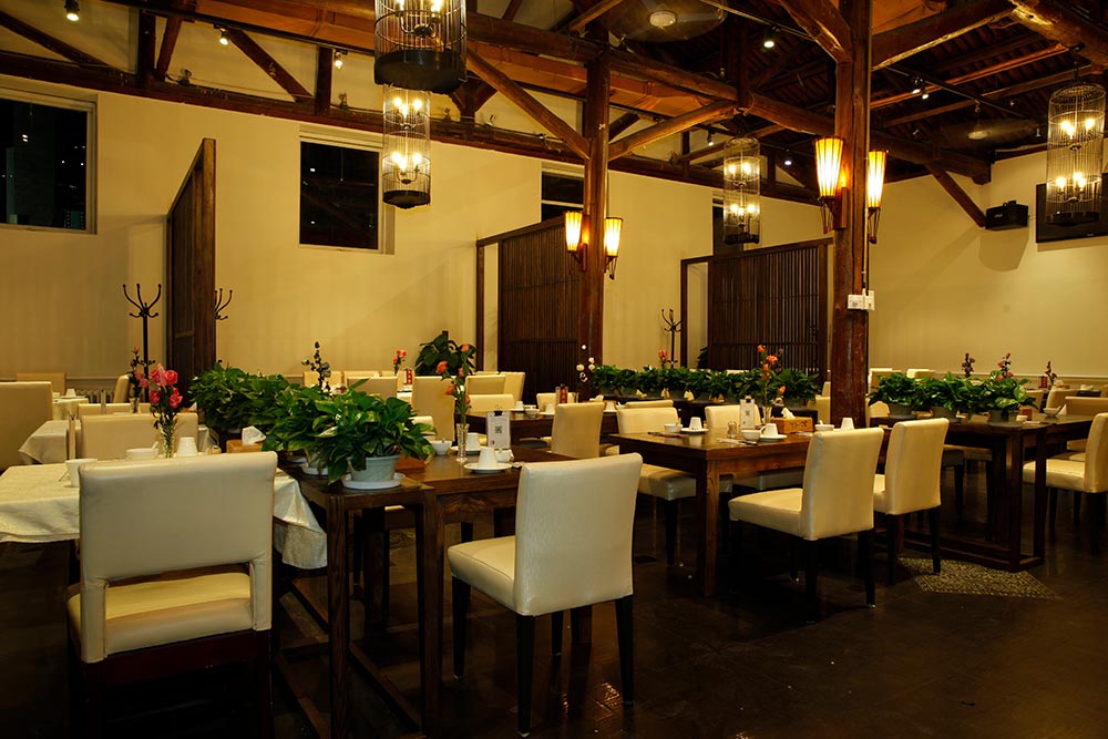 • 二层主要是包间区,运用榆木百叶做成屏风,使整个餐厅充满浓郁的自然风光,